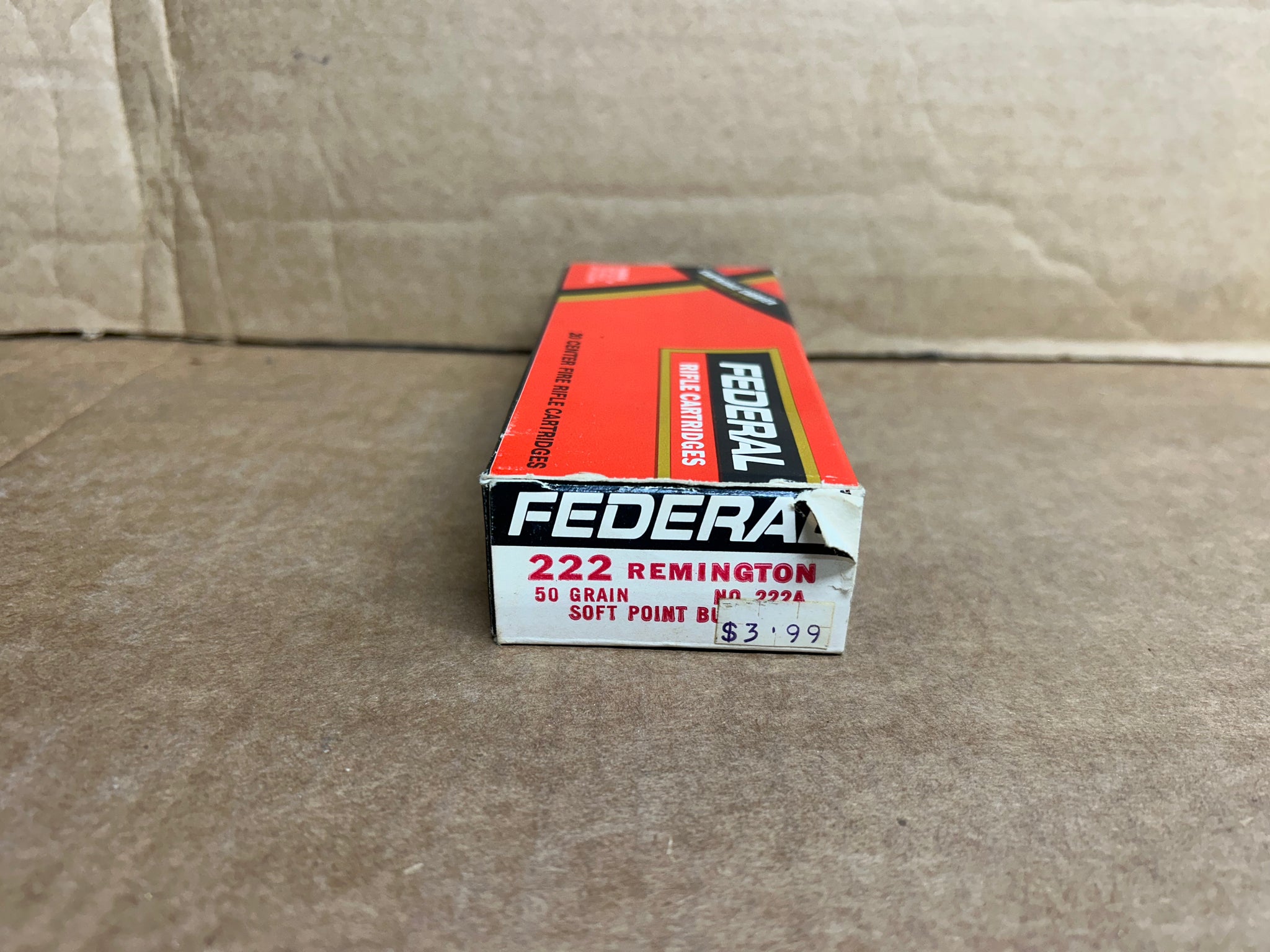 Federal 222 Remington 50 grain soft 10 rounds out of 20. Discounted due to missing rounds.