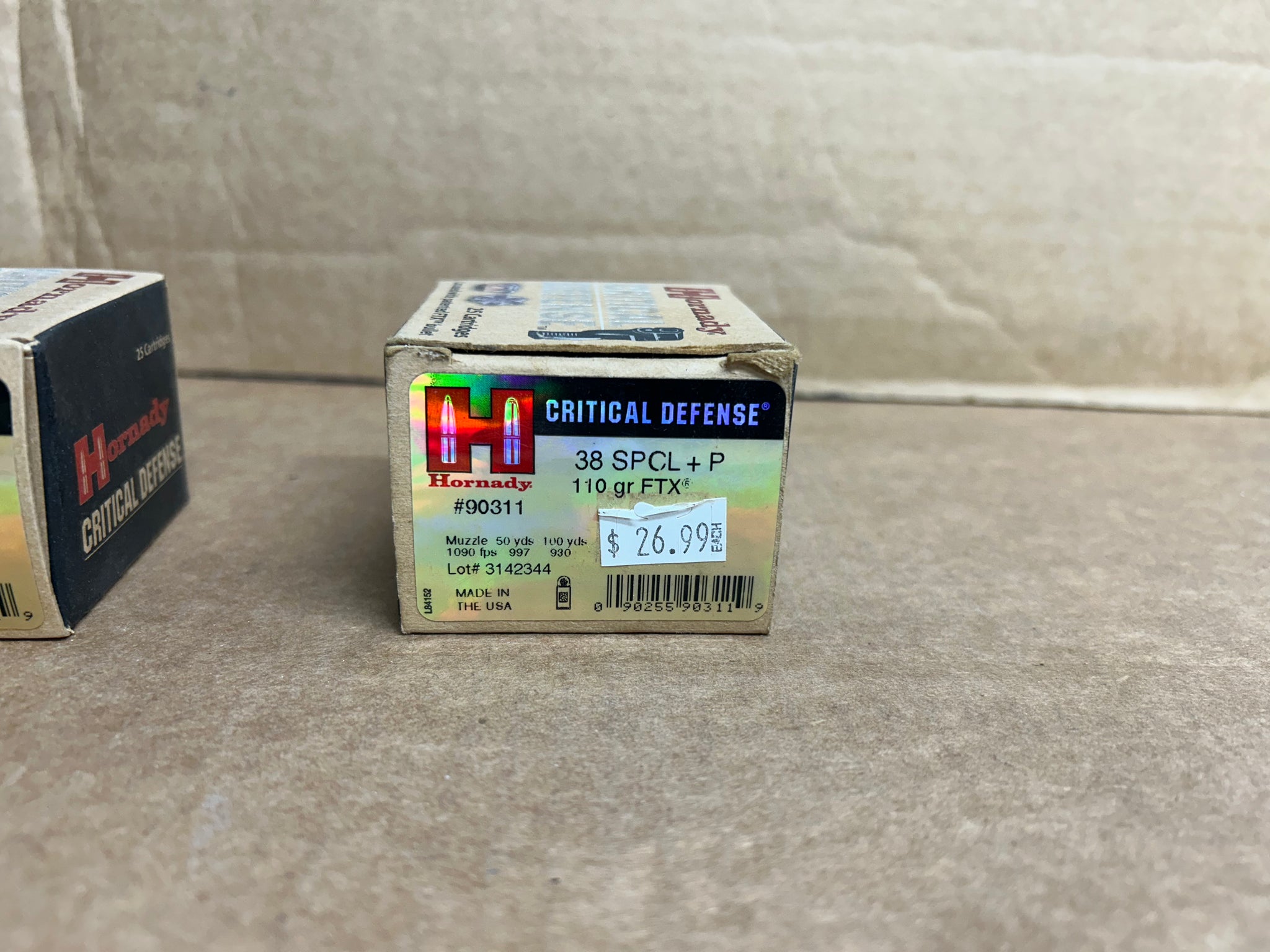 Hornady critical defense 38 special +P 110 grain FTX. Price is per box 3 boxes total.