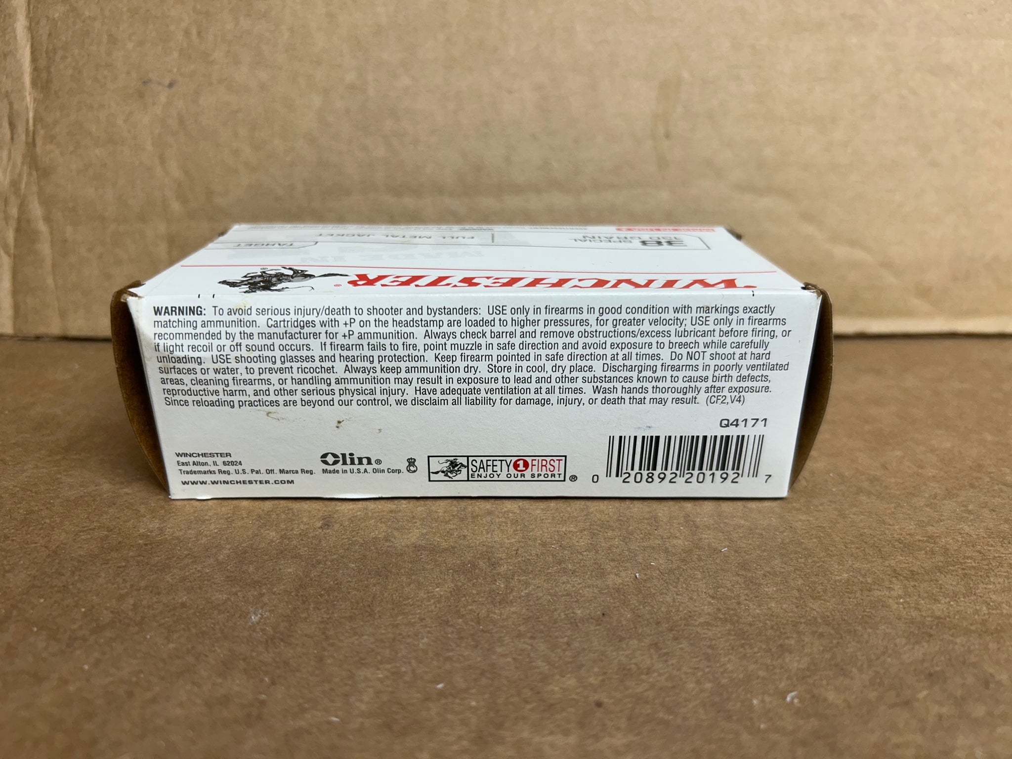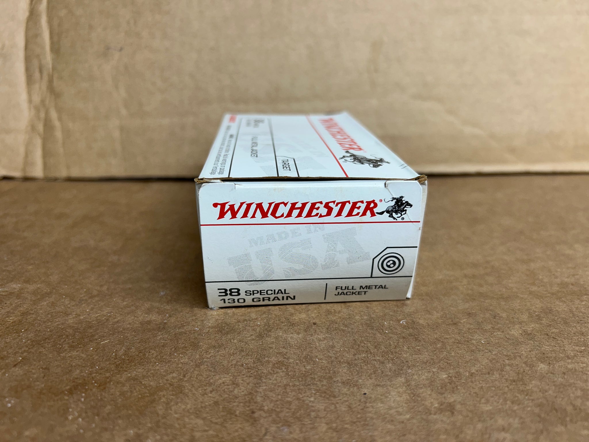 Winchester 38 special 130 grain full metal jacket. Five rounds missing. Price discounted for missing rounds.