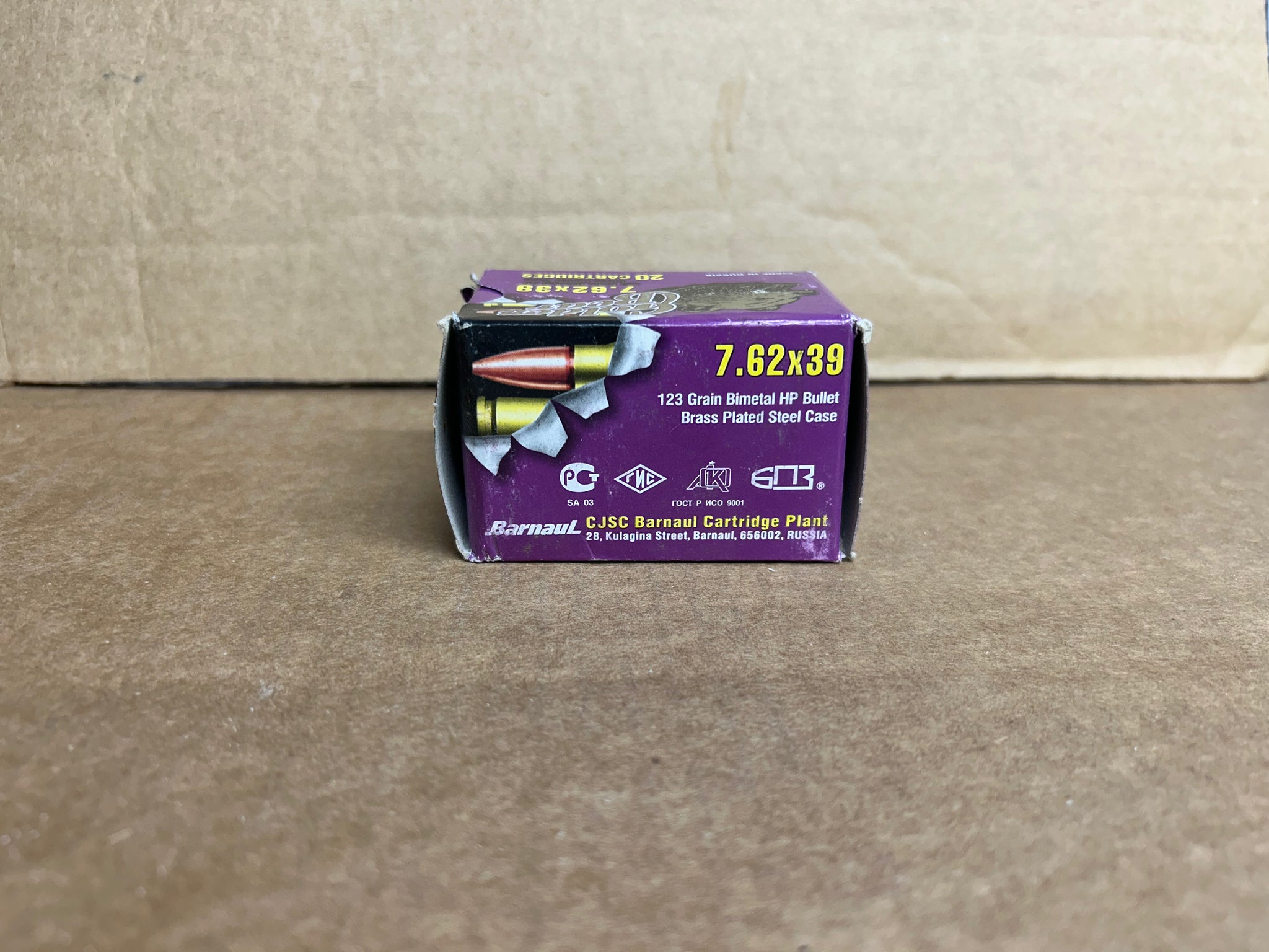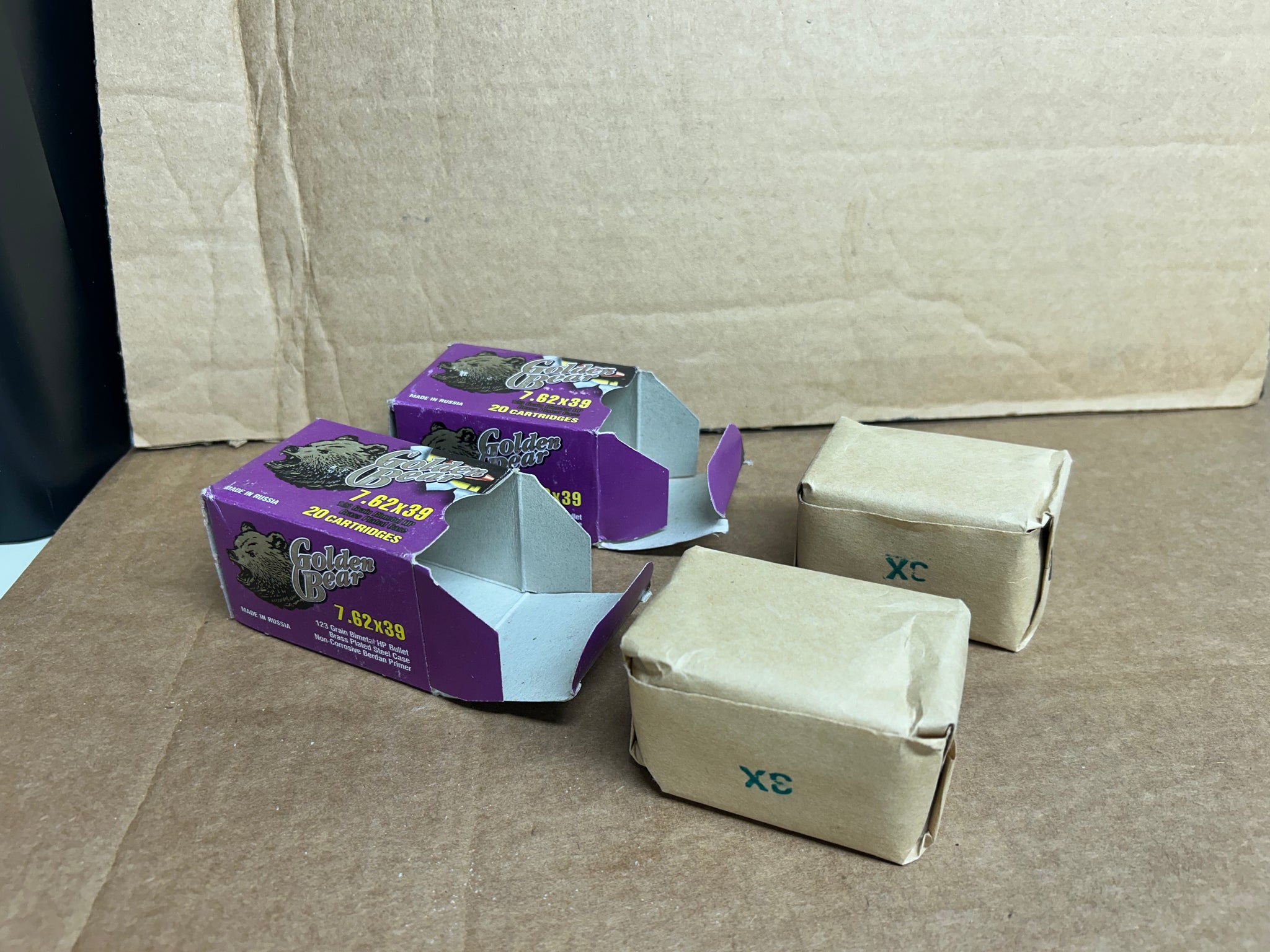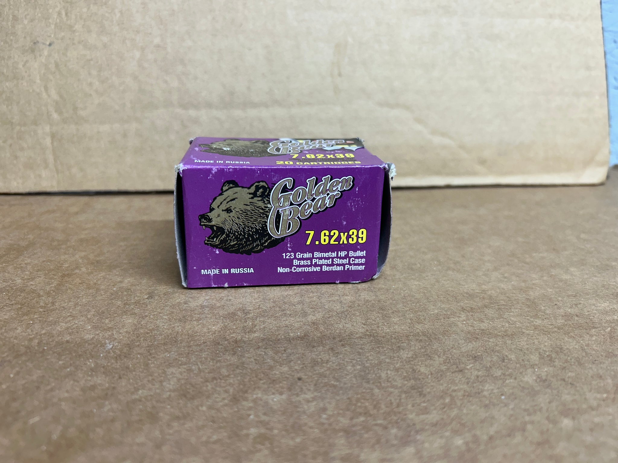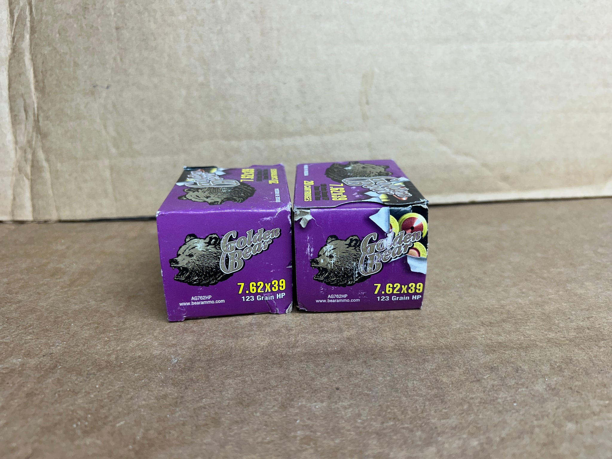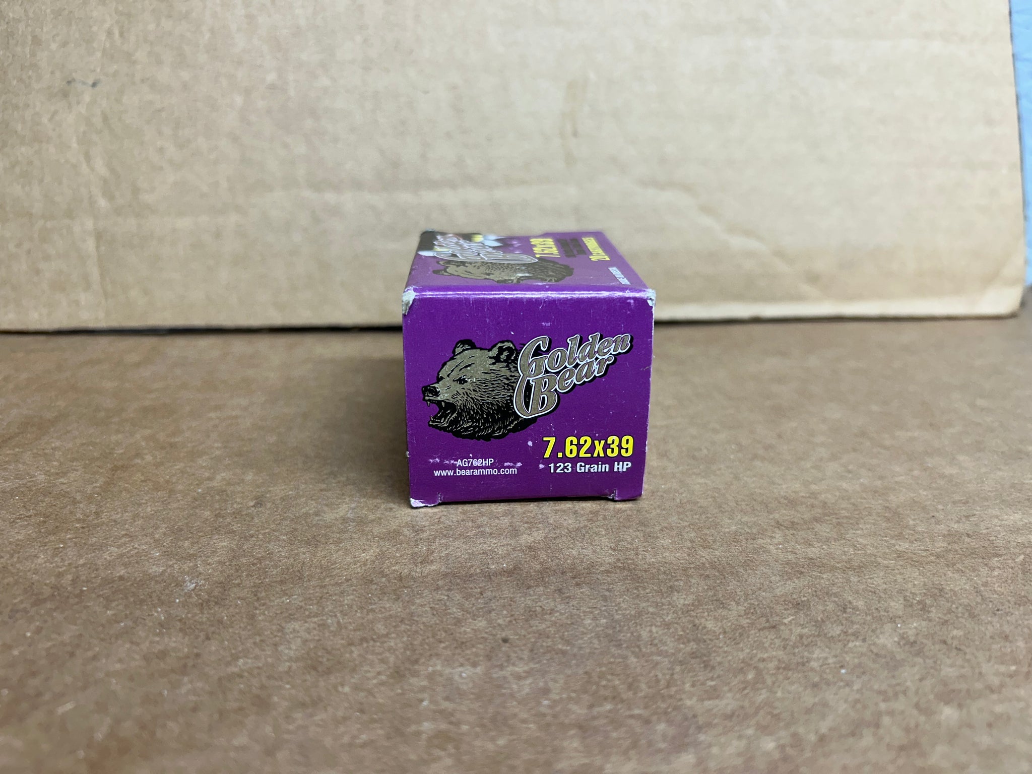 Golden Bear 7.62 x 39 123 grain hollow .20 round boxes. Price is per box 2 boxes total.