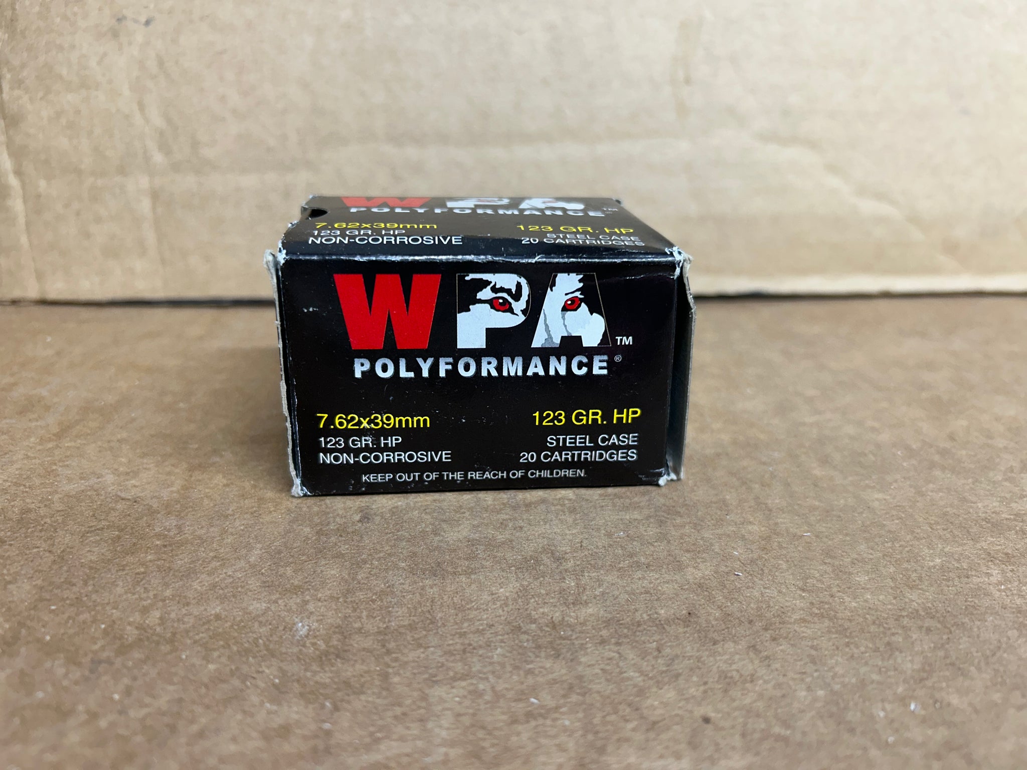 Wolf performance, ammunition, polyformance 123 grain hollow point. 20 round box.