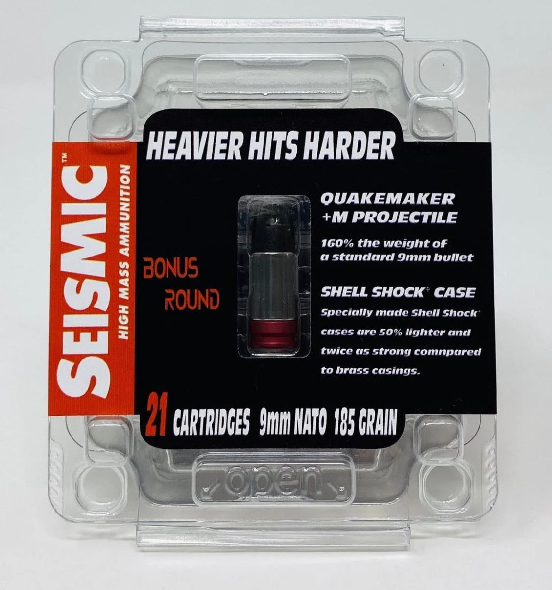 Seismic ammo is taking conventional ammunition in a different direction. We believe a projectile with more mass traveling at subsonic velocities (900-1,000 fps depending on barrel length) is more effective than a lighter weight projectile traveling at a higher speed.
