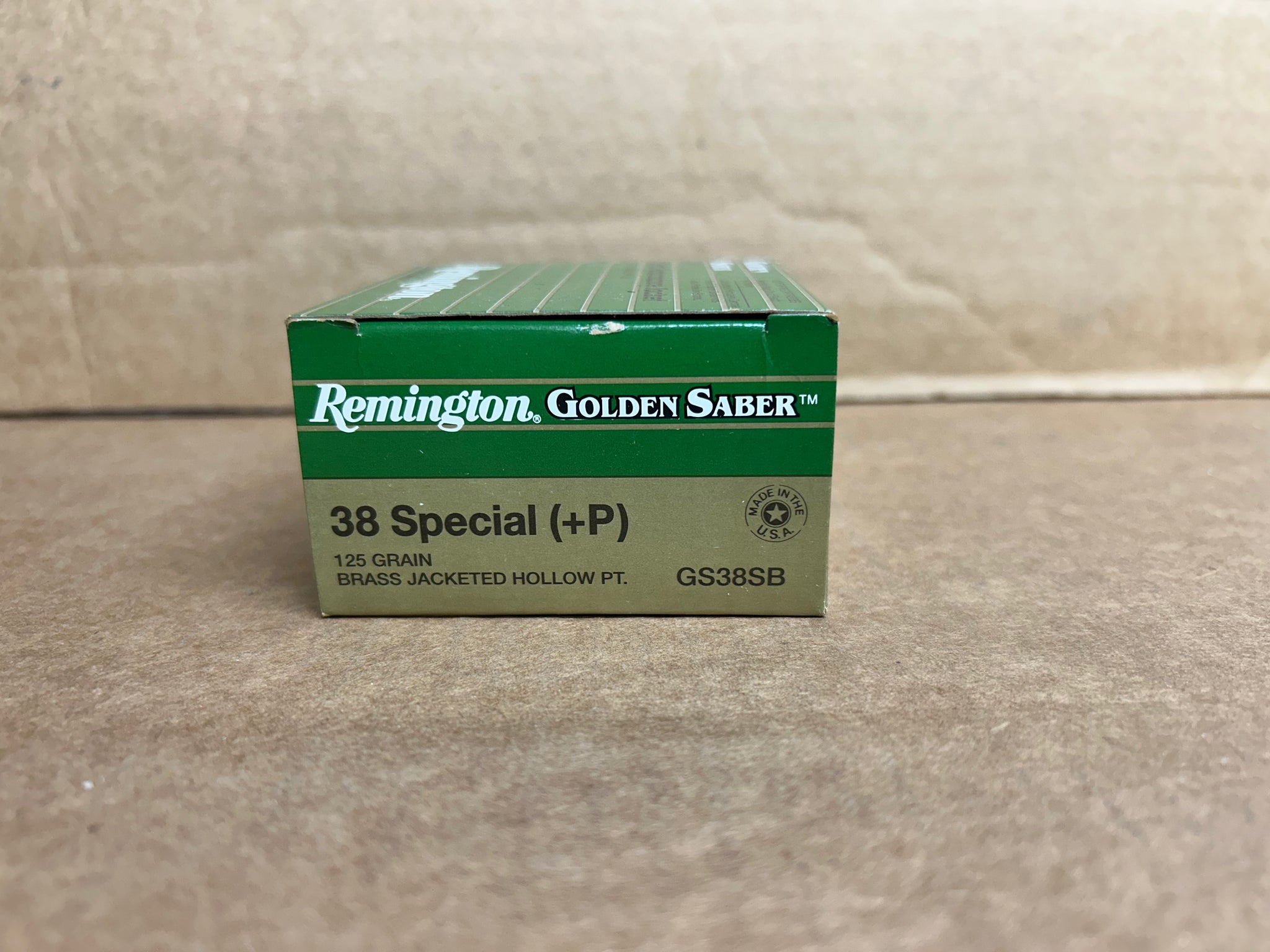 Remington Golden Sabre 38 special plus P jacketed Hollow point. Price is per box 5 boxes total.