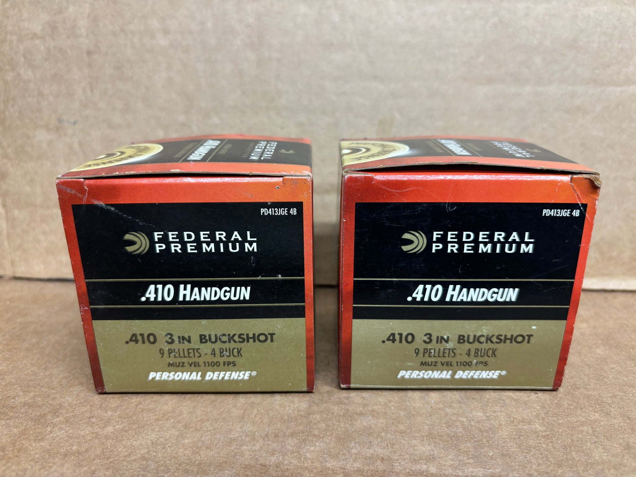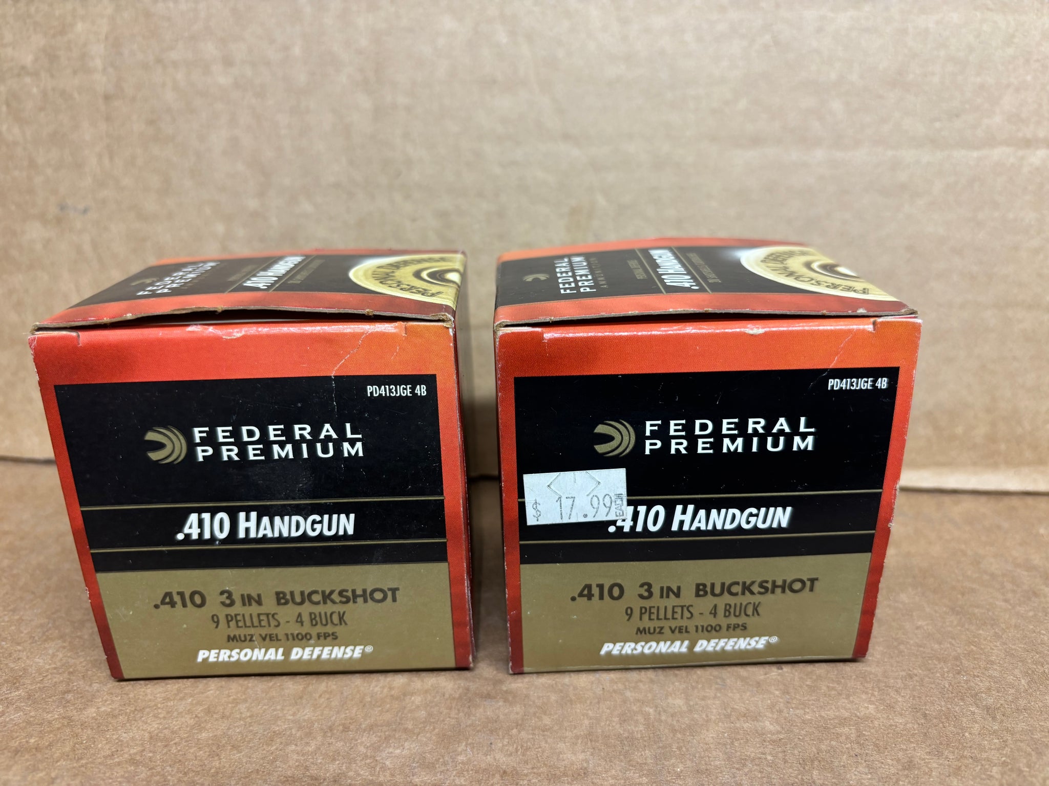 This is a 20 round box of .410 3 inch Handgun Buckshot 9 Pellets-4 Buck