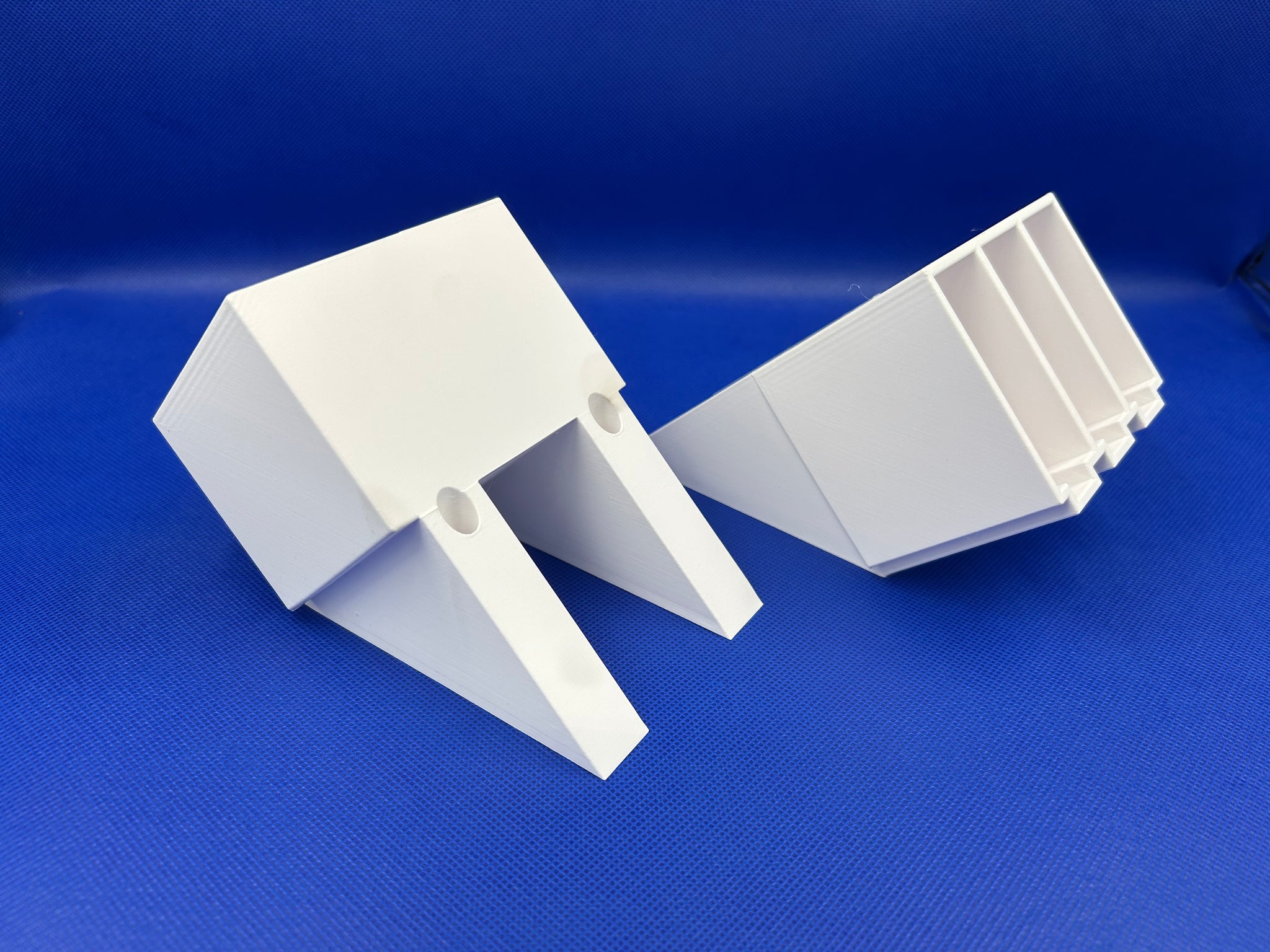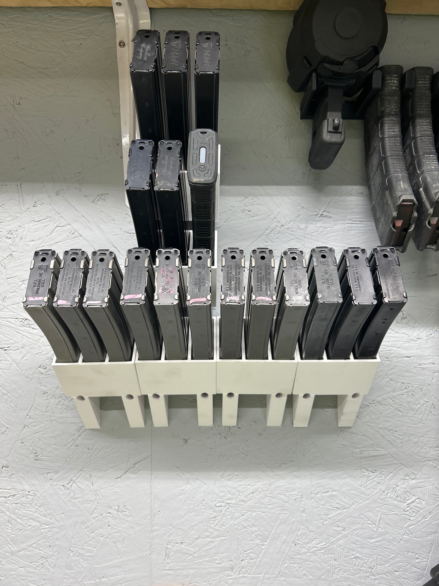 This is a 3D printed PETG magazine holder. We can print in White and Black PETG. White is pictured.